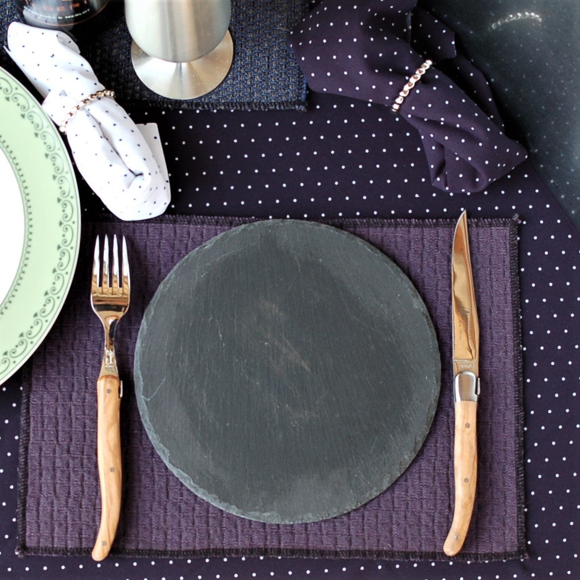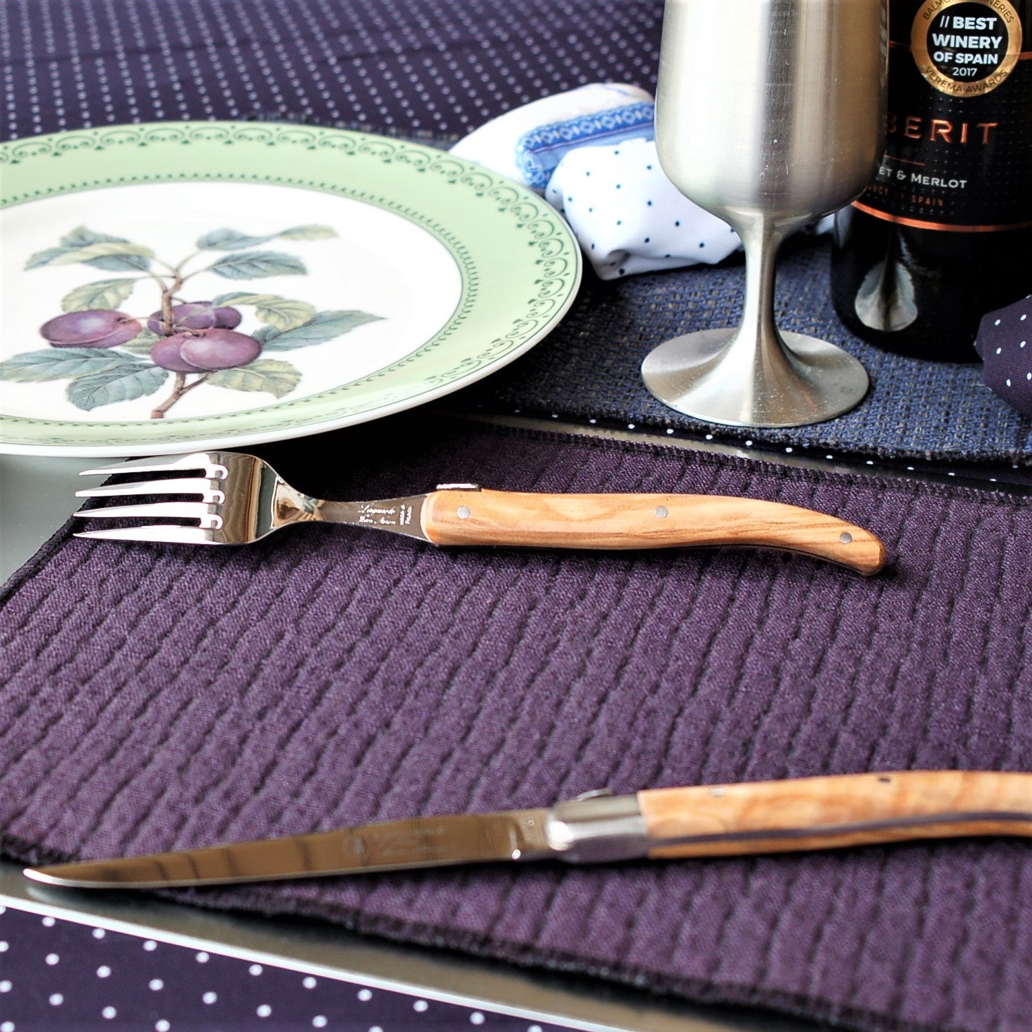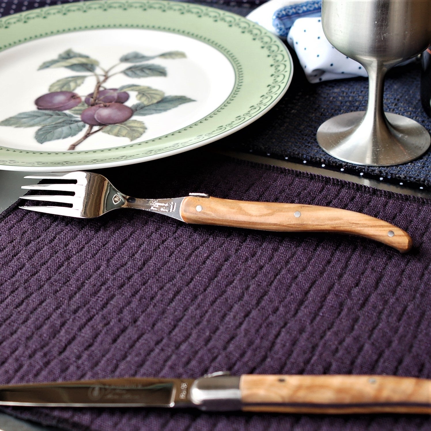 フランスではフォーク先を下にしてセットします、ハンドルの向きが揃います