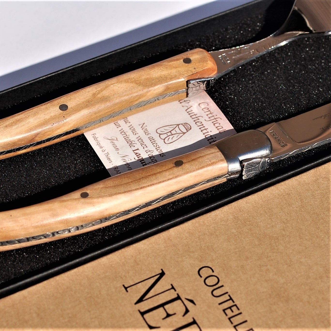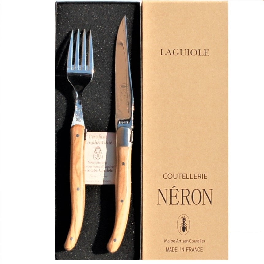 サイバール株式会社はライヨール オリーブハンドル 2.5mm ステーキナイフ 2.0mm ディナーフォーク ギフト箱入り フランス製 NERONの販売を開始しました