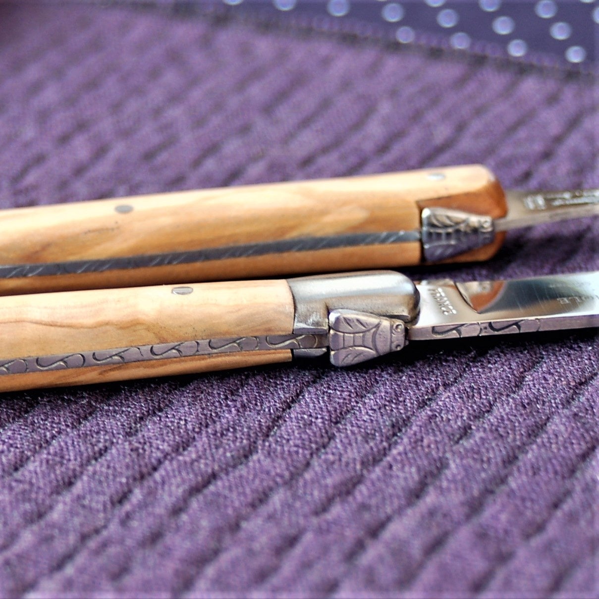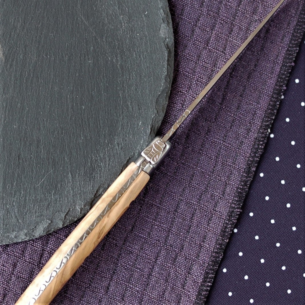 ハンドルは欧州産天然オリーブ材、ハンドル部分も丁寧に磨かれています