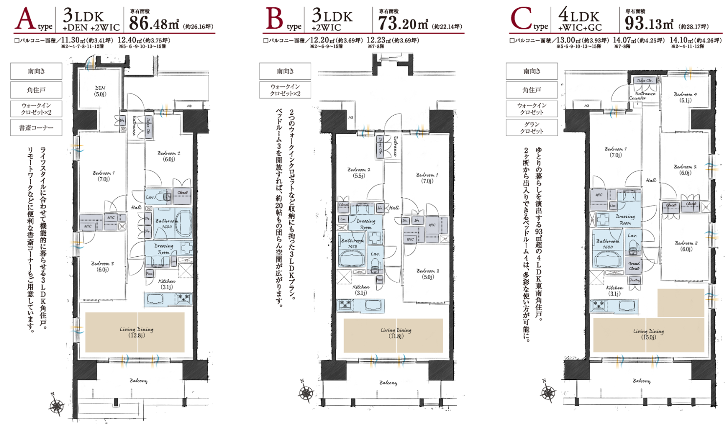 住居専有面積 : 73.20㎡~93.13㎡