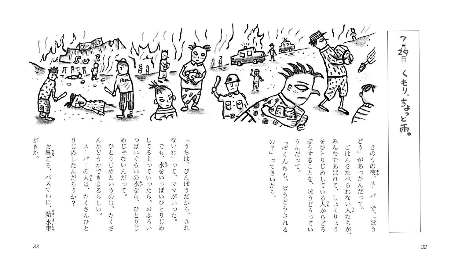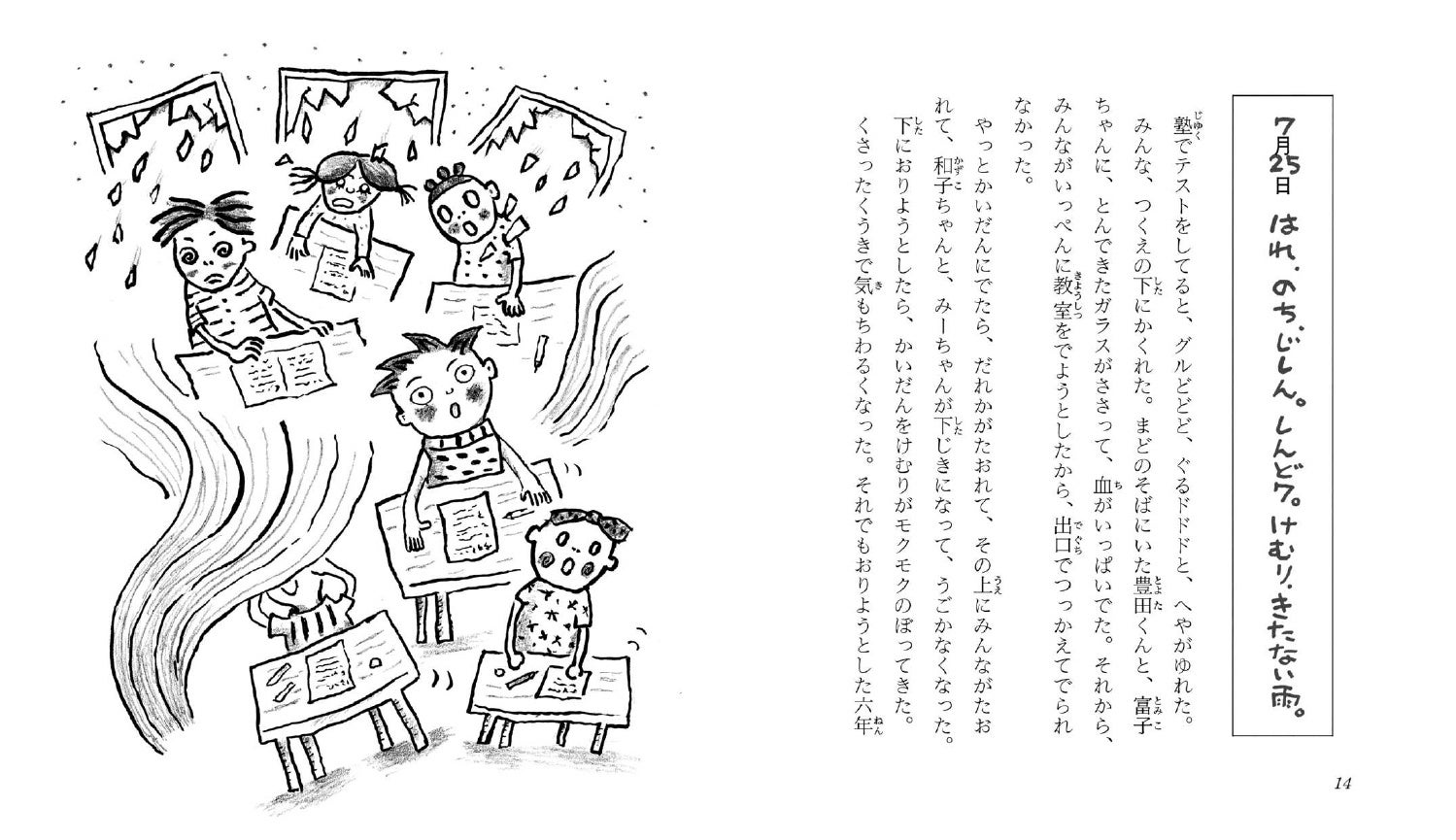 等身大の子どもが使う飾らない言葉が、震災のリアルをより一層際立たせて読者の胸に迫ります。『でんせん病』『ぼうどう』『きょう犬病』といった単語を、本書のオリジナルで覚えた読者も多いのではないでしょうか。