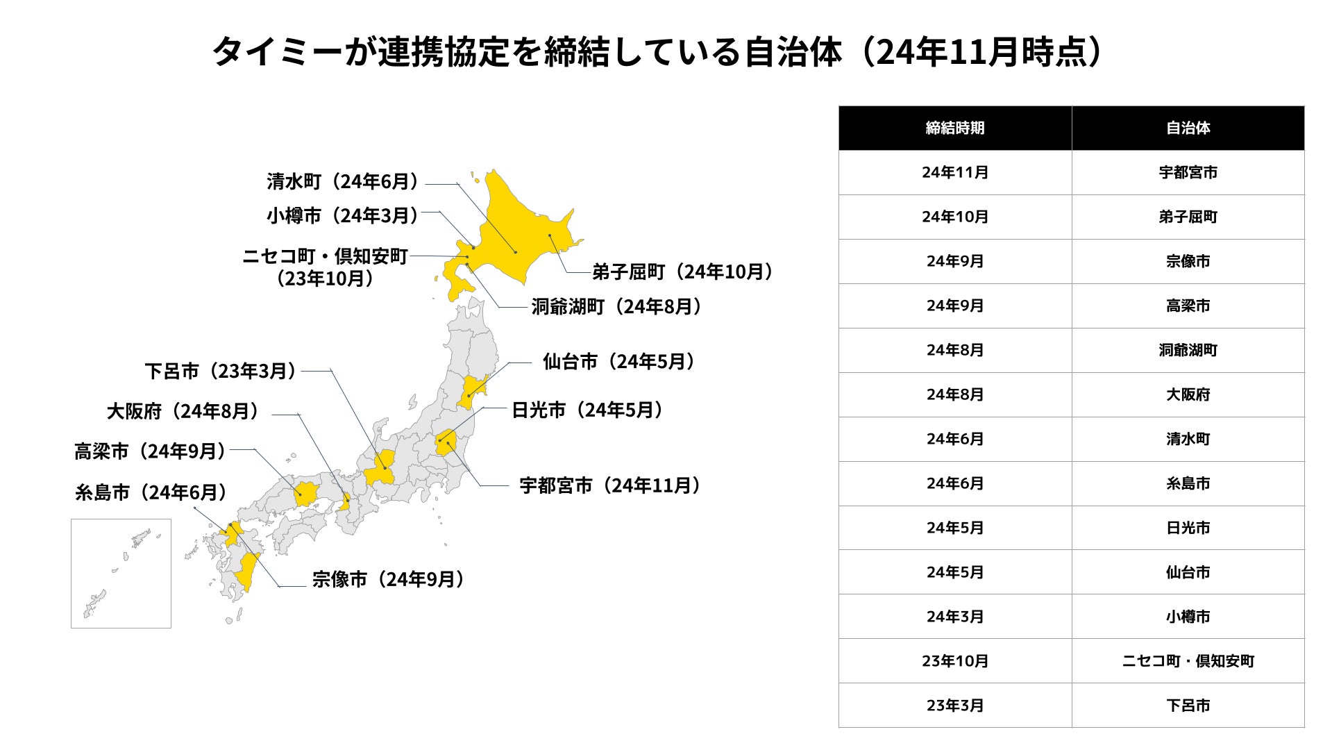 2024年8月20日発表:洞爺湖町と包括連携協定を締結(https://corp.timee.co.jp/news/detail-3451/ )