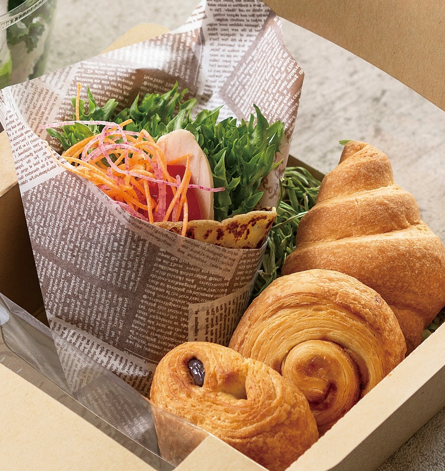 Deli-Buffetでは、サラダの他、タコスミートや大豆ミートとツナのディップ、ショートパスタのタプナード和えなど、Deli-Foods(デリフーズ)も充実。お好みの料理をトーストにのせたり、クロワッサンに挟んだり、ダッチクレープで包んだり…。自分だけのオリジナルサンドをお楽しみいただくことができます。