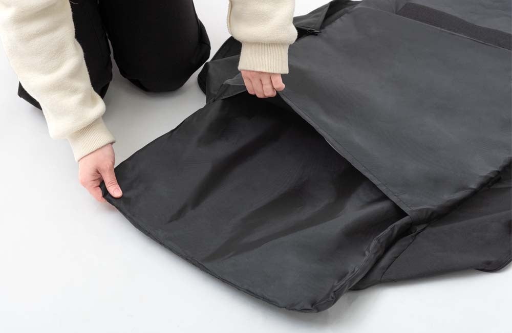 本製品は、フルクローズ・ハーフオープン・フルオープンの3通りのスタイルでご使用いただけます。フルクローズ時でも通気性をしっかりと確保しており、快適にご利用いただけます。また、カバーには爪で引っかいても破れにくい、耐久性の高い素材を採用しています。さらに、天窓を設けることで、飼い主さんがいつでもワンちゃんの様子を確認でき、安心してお使いいただけます。