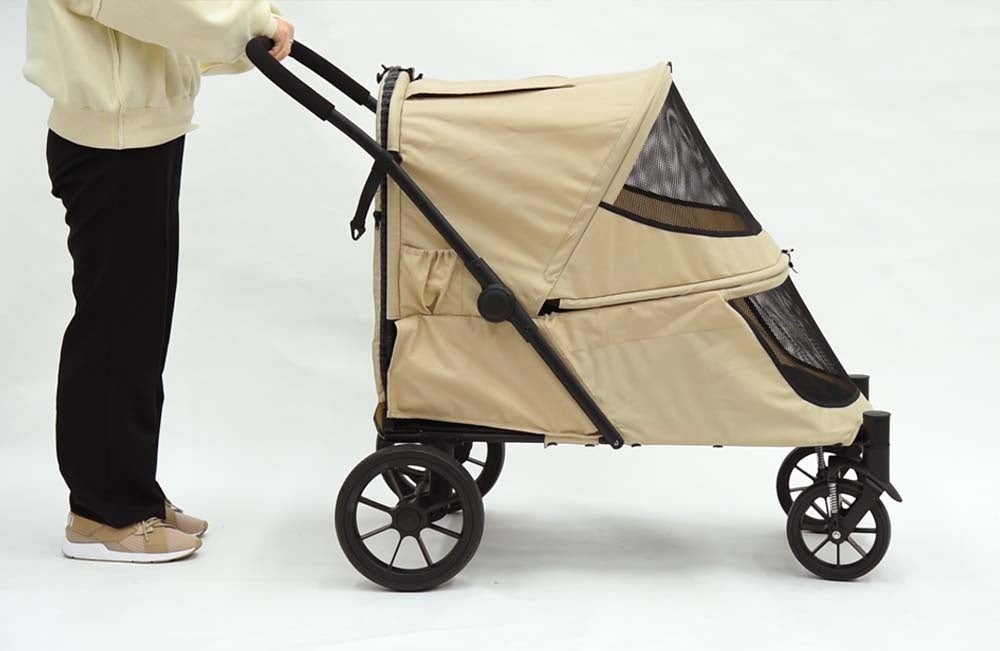 シニア犬や足腰の弱った大型犬でも自分で乗り降りができる設計により、飼い主さんの負担を軽減し、より快適なお散歩時間をサポートします。