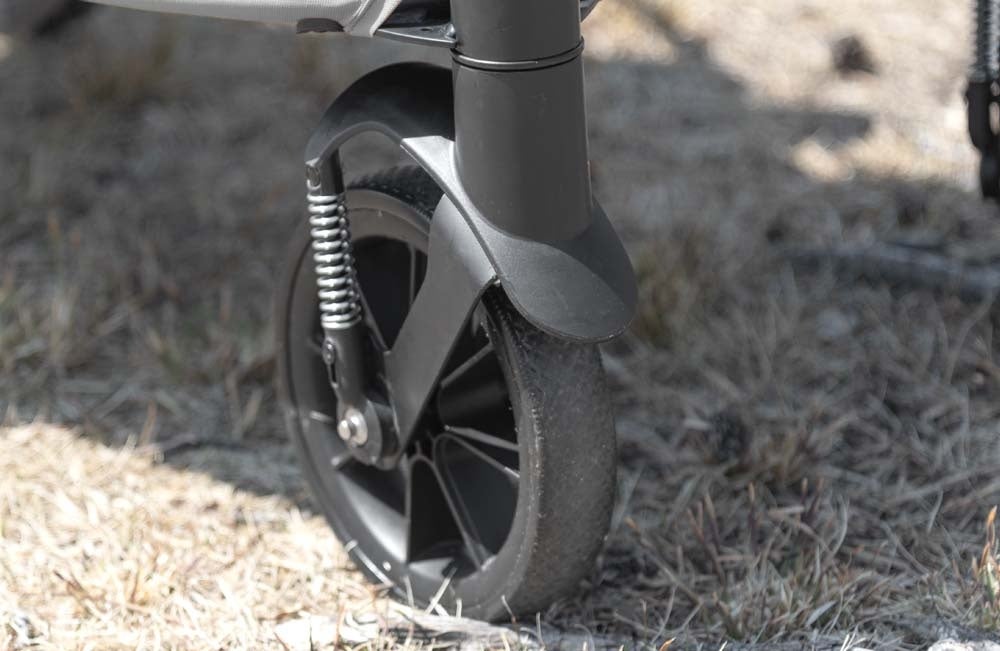前輪には、高価格帯のベビーカーにも採用されているサスペンションを搭載しており、凹凸のある道でも快適な乗り心地を実現します。