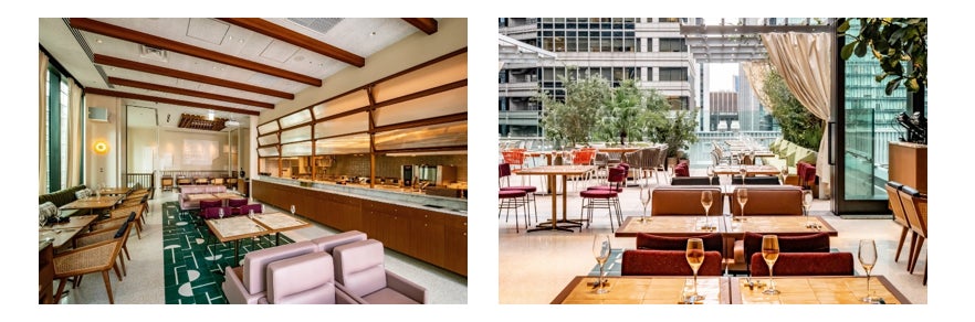 “日本のテロワール”をテーマにしたメインフロアは、ソムリエが厳選した約50種類のワインが揃います。合わせるフードには〈THE UPPER〉パートナーシェフ、大阪La Cime高田裕介氏の原点、フランス“ブラッスリーメニュー”に加え、イベント限定フードを提供。