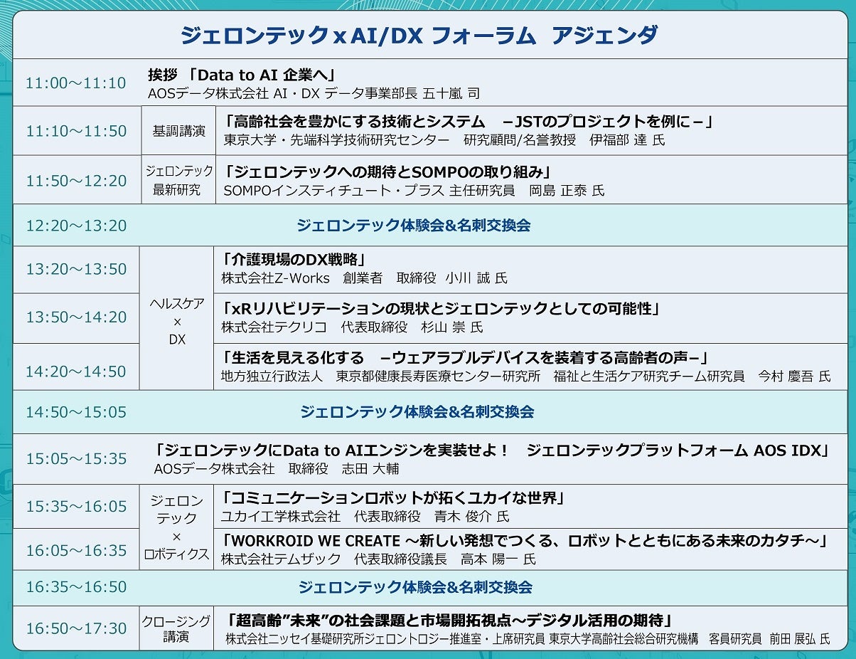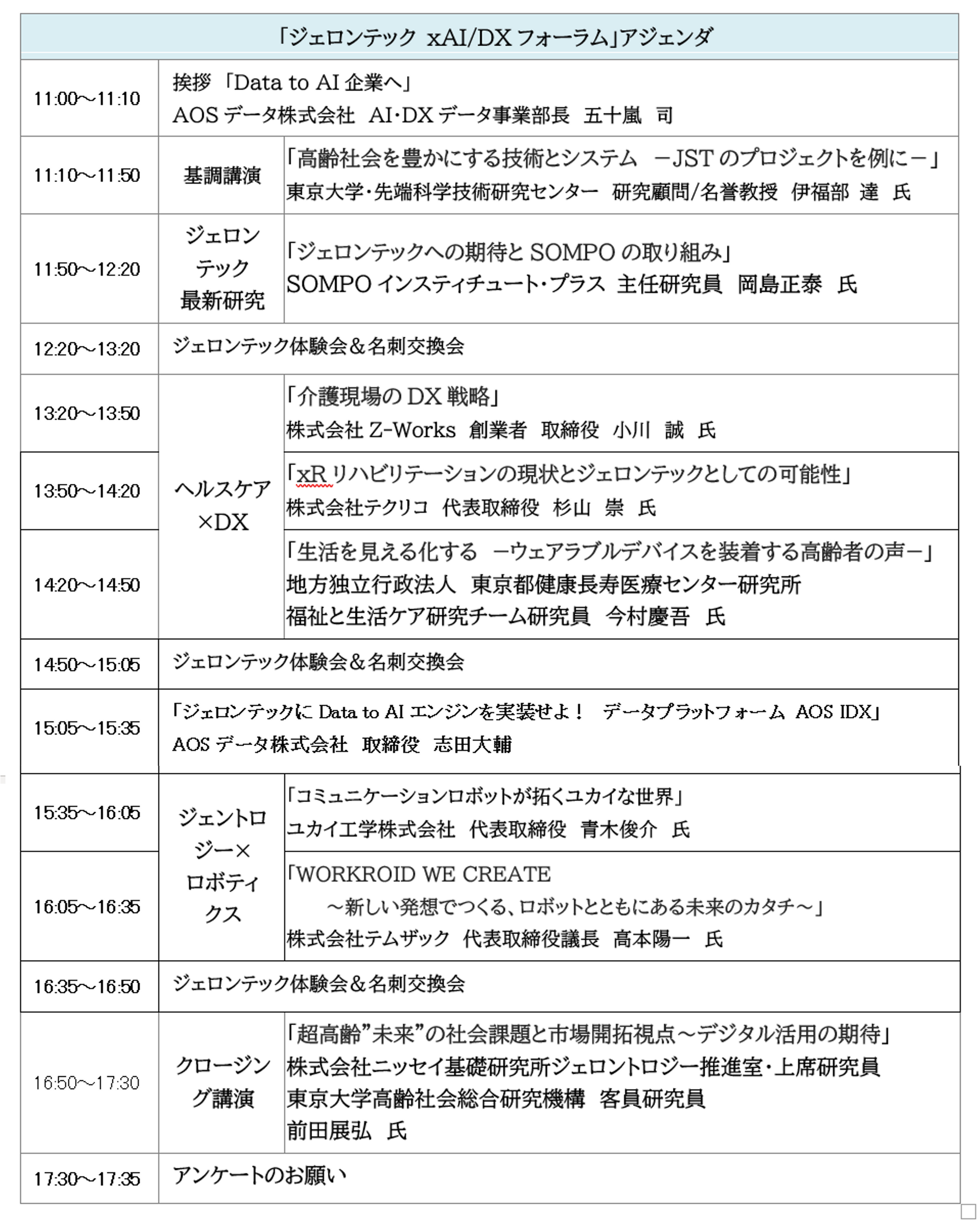 AOSデータ社、「ジェロンテック×AI/DXフォーラム」開催、超高齢社会先進国、日本における最新のヘルシーエイジングDX事例