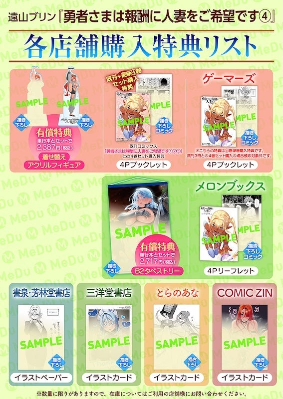 株式会社ジーオーティー(本社:東京都港区、代表取締役:吉永敦仁)はMeDu COMICS レーベルより2025年6月30日にコミックス『勇者さまは報酬に人妻をご希望です(4)』(著:遠山ブリン)を発売いたします。