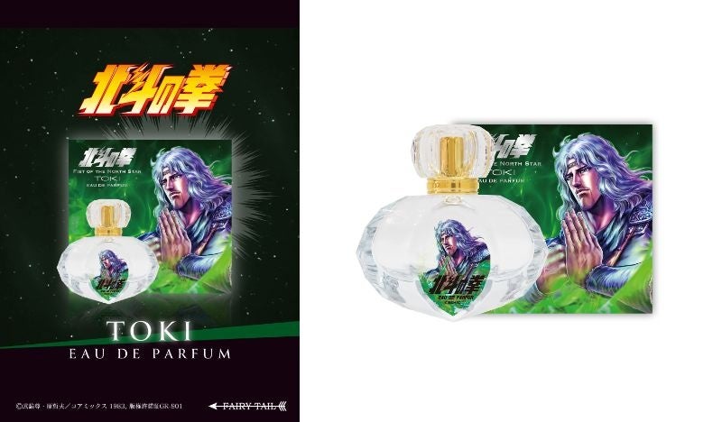 シトラスとムスクが合わさった優しく柔らかい香りは北斗神拳史上最も華麗な技の使い手であり、伝承者に最も近い男と言われていたトキの「柔の拳」と彼の優しさを彷彿とさせます。