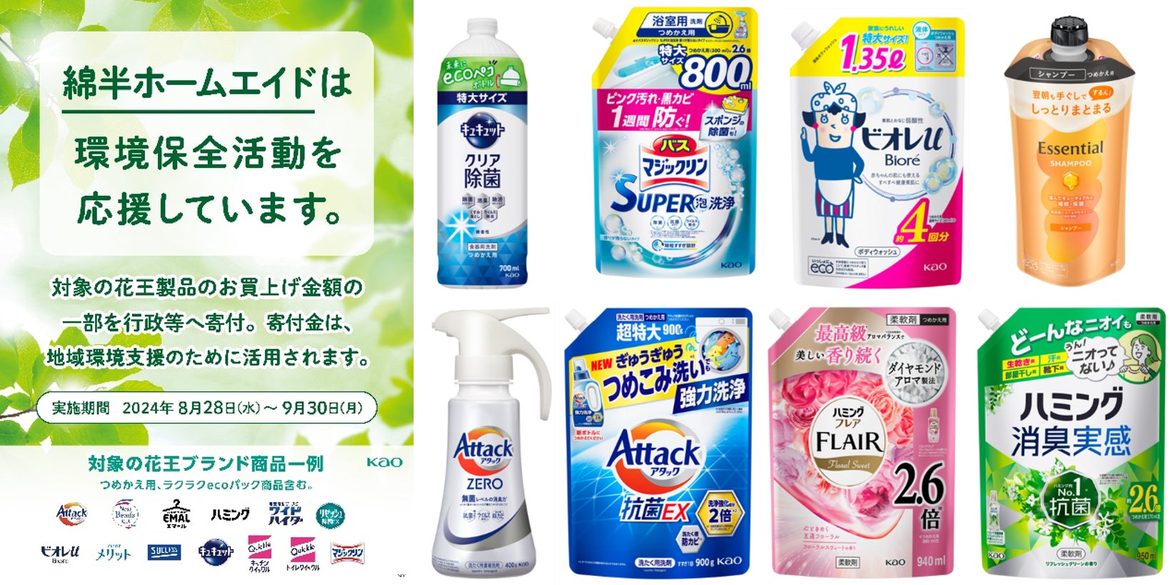 綿半パートナーズ株式会社(長野県飯田市 代表取締役社長:野原勇)は、2024年度も「環境保全寄付企画(綿半パートナーズ&KAO タイアップキャンペーン)」を実施し、期間中の売上の一部を長野県へ寄付いたしました。