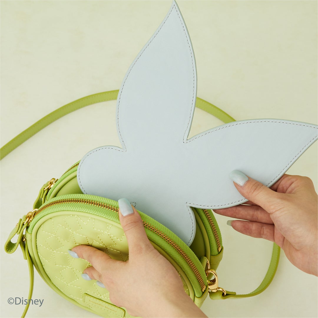 「ティンカー・ベル」の着ている洋服や髪色をイメージしたミントグリーン×柔らかいイエローカラーのバッグがピクシーダストをまとい、まるで宙を飛び回っている様子の「ティンカー・ベル」を連想させるような気分に。