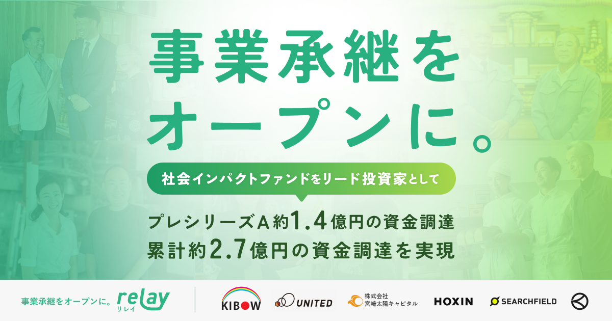 今回、リードインベスターとなった社会インパクトファンド一般財団法人KIBOWをはじめ、出資者の皆さまからは、社会課題の解決と成長、社会の変革を加速することにご期待いただいています。relayの運営を通じてこれらにお応えし、より社会貢献度の高い事業に成長させてまいります。