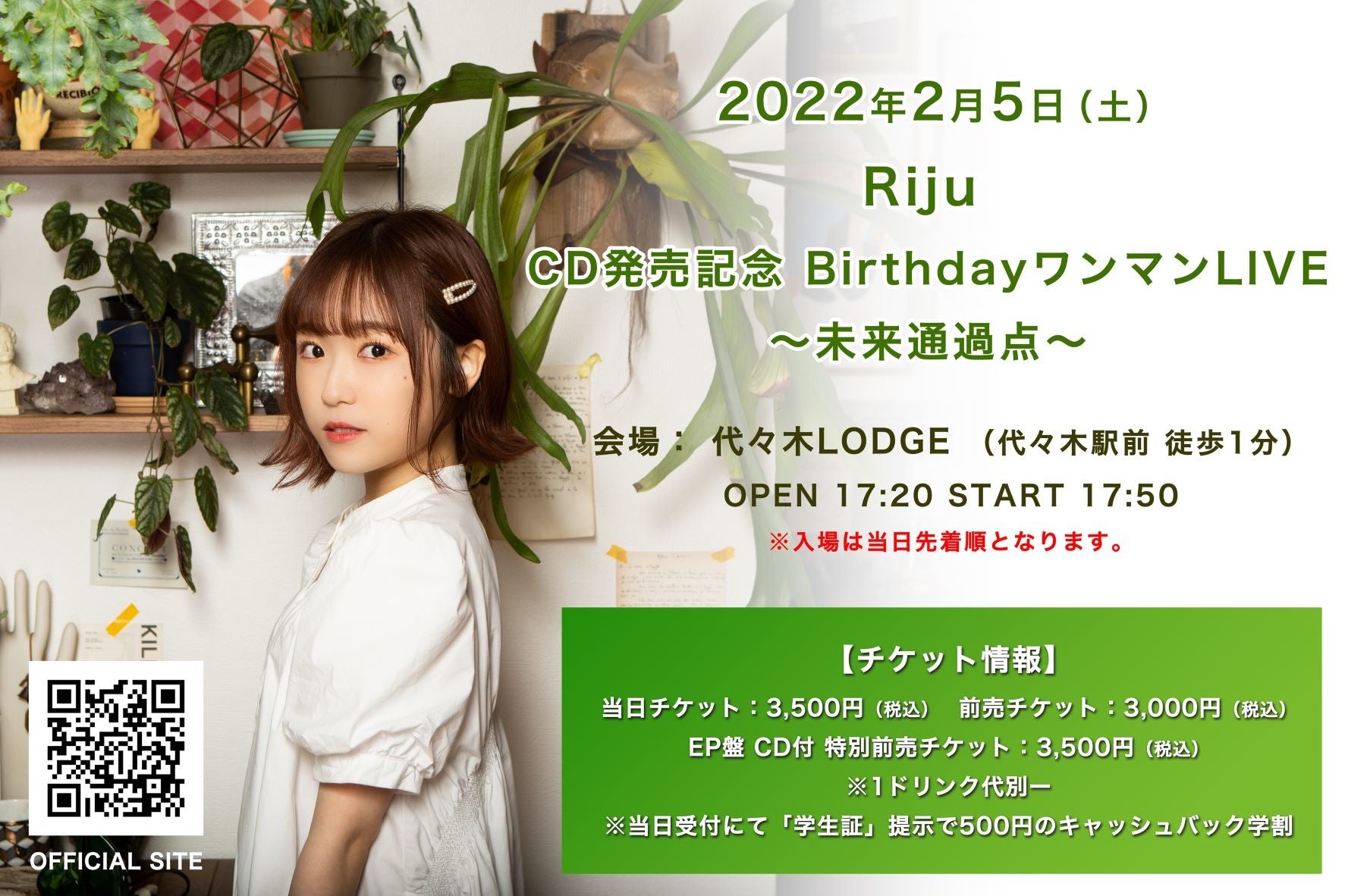期待のシンガーソングライター、Riju (18歳)の勢いが止まらない!!新曲あり映像ありの「レコ発BDワンマンライヴ」を決行。さらに1st EP 「ミライツウカテン」CDリリース。