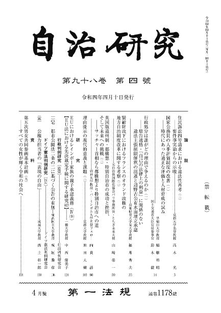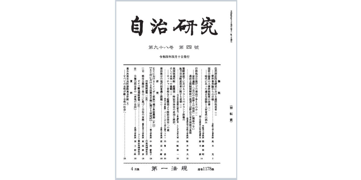 【自治研究】大正14年創刊の伝統ある総合月刊誌!4月号では、「行政処分は誰がどの理由で争えるのか」等についての論文が掲載されています!!
