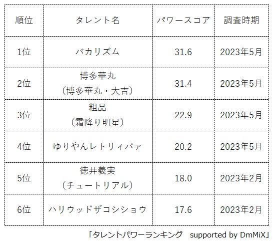 「タレントパワーランキング supported by DmMiX」である旨を明記