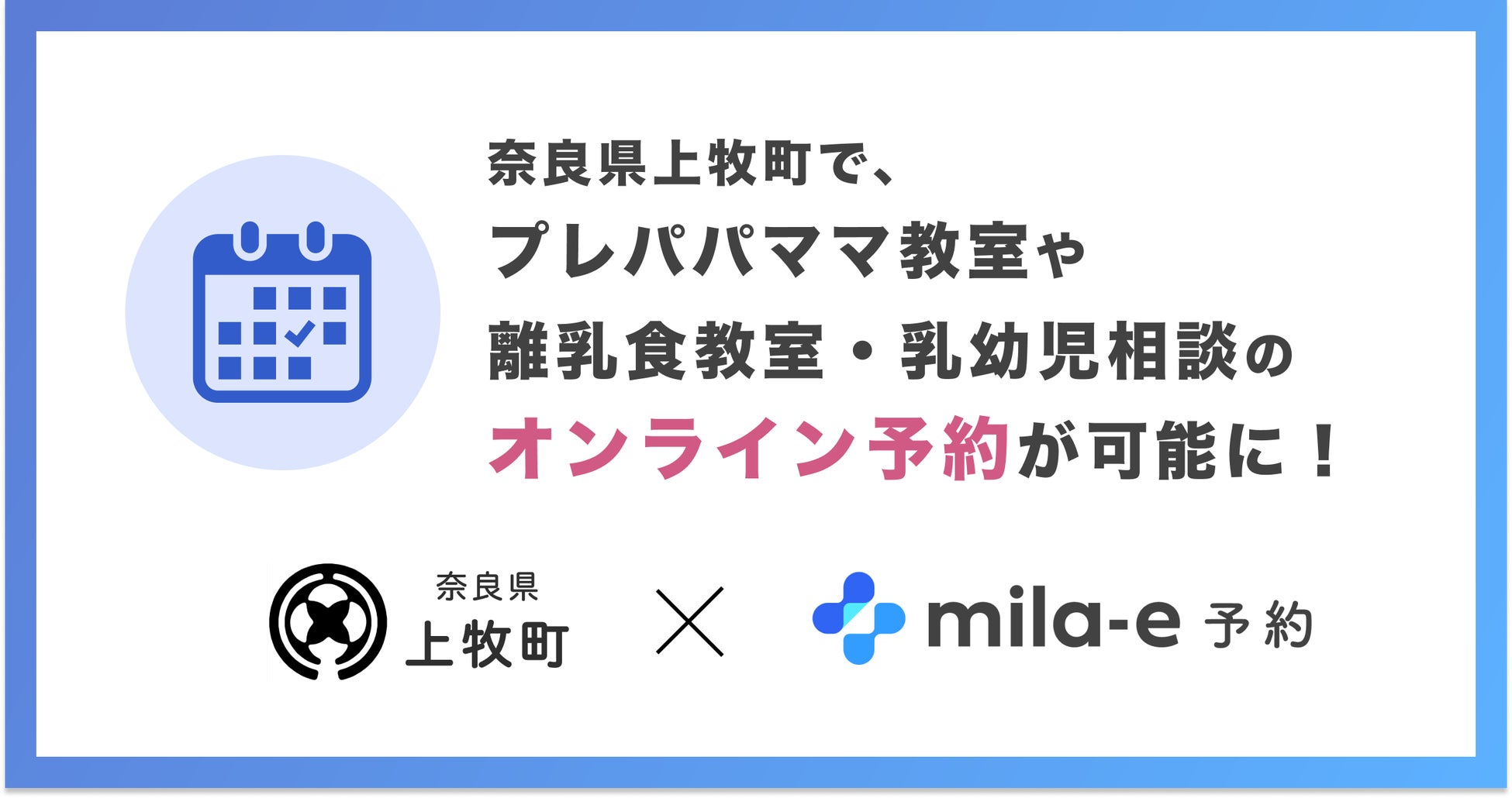 ミラボ、奈良県 上牧町で 子育て支援のオンライン予約「mila-e 予約」提供開始