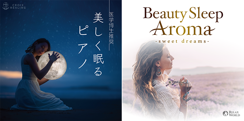 アンチエイジングの専門家でもある医学博士の板東浩先生が推奨する、新陳代謝を促進し美しく眠る為のヒーリング作品『医学博士推奨~美しく眠るピアノ』、心地の良い癒しの音楽で「おやすみ前のヒーリングSPA習慣」を楽しむ『ヒーリング・アロマ ~心地の良い癒しの眠り』などの癒やしのヒーリングCD