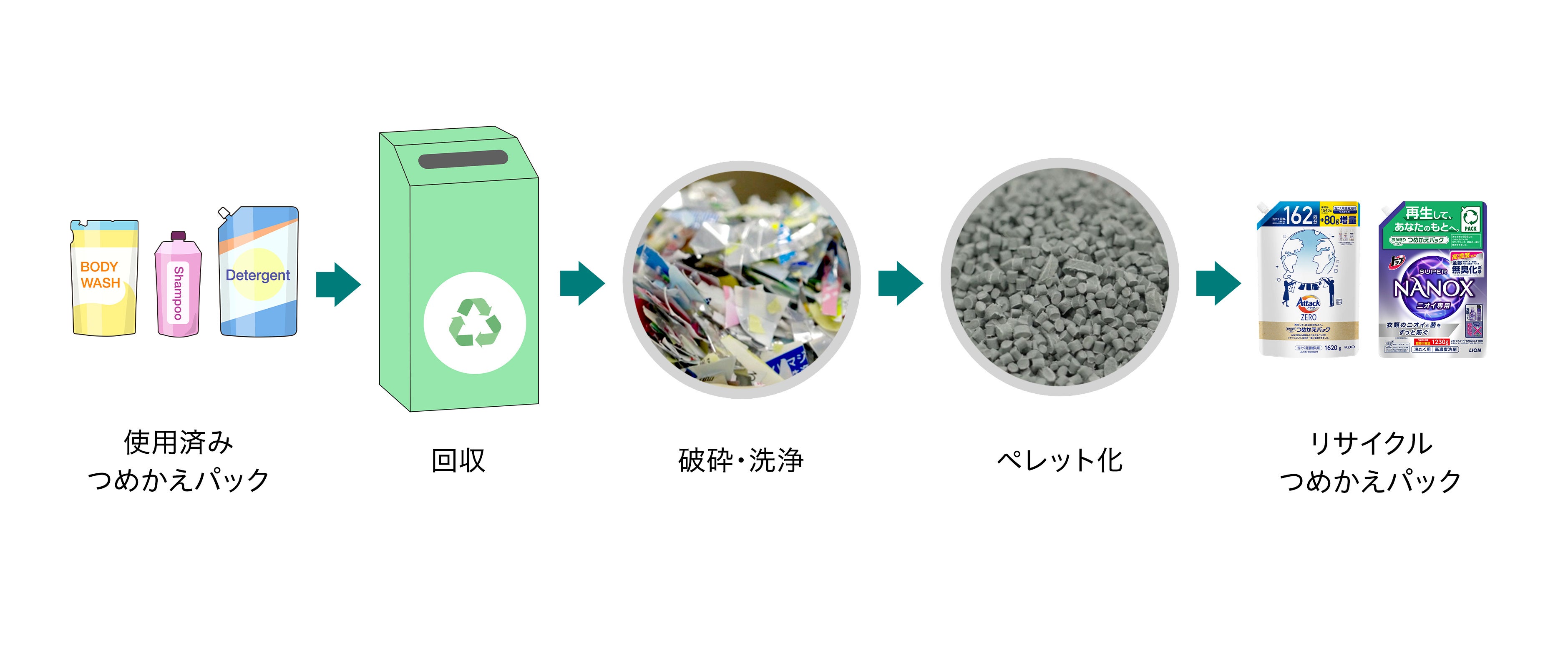 ライオン:花王・ライオンとウエルシア薬局・ハマキョウレックスが使用済みつめかえフィルム容器のリサイクル実証実験を開始