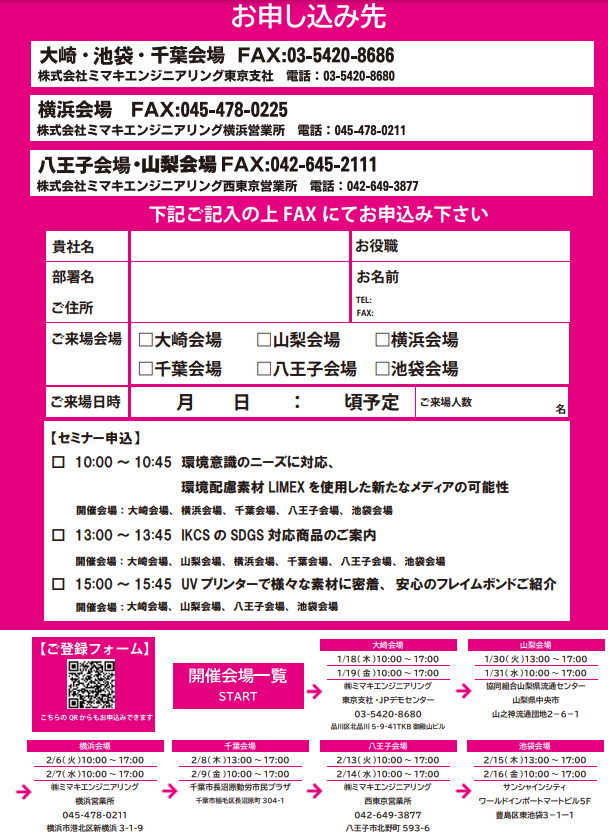 この度、弊社シンクイノベーション株式会社は、株式会社ミマキエンジニアリング関東各エリアで開催される