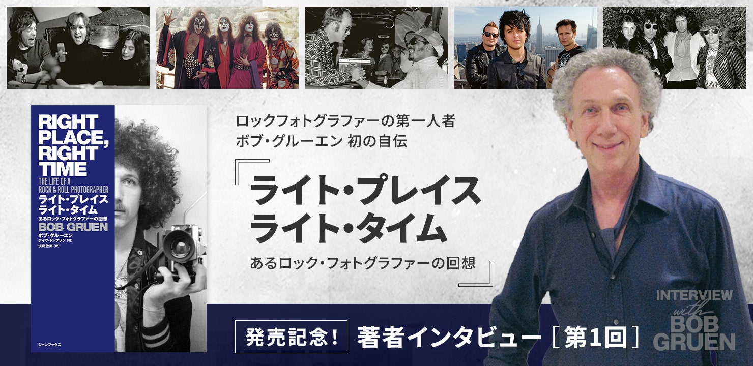 今年、待望の邦訳版『ライト・プレイス ライト・タイム あるロック・フォトグラファーの回想』(https://books.jeane.jp/books/rightplacerighttime/)が発売され、その記念に著者ボブ・グルーエンへ直接インタビュー(全3回)を実施しました。