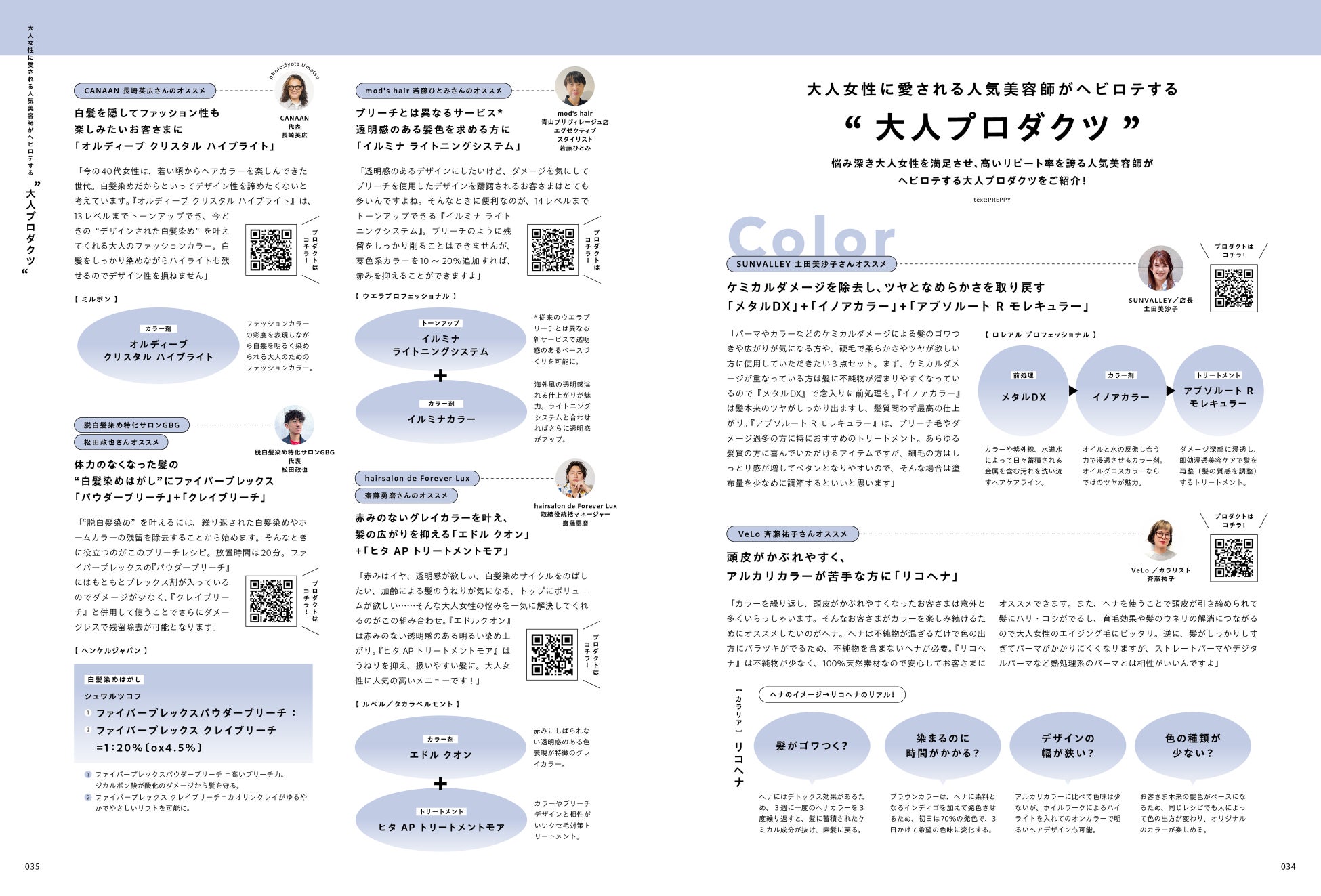 第二特集は「大人女性に愛される人気美容師がヘビロテする“大人プロダクツ”」。悩み深き大人女性を満足させ、高いリピート率を誇る人気美容師がヘビロテする大人プロダクツをご紹介!