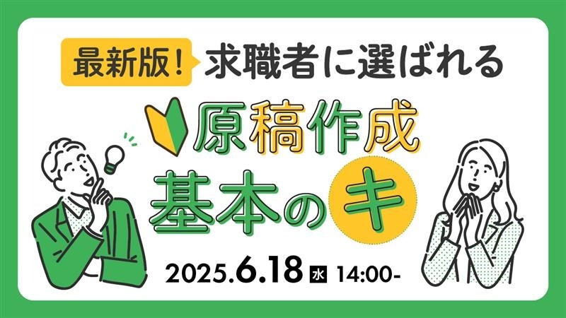「働く」に関する社会課題をビジネスで解決するキャムコムグループの株式会社天職市場(本社:東京都新宿区、代表取締役:春名敬太 、以下:天職市場)は、2025年6月18日(水) 14:00よりオンラインセミナー『最新版!求職者に選ばれる原稿作成基本のキ』を開催いたします。