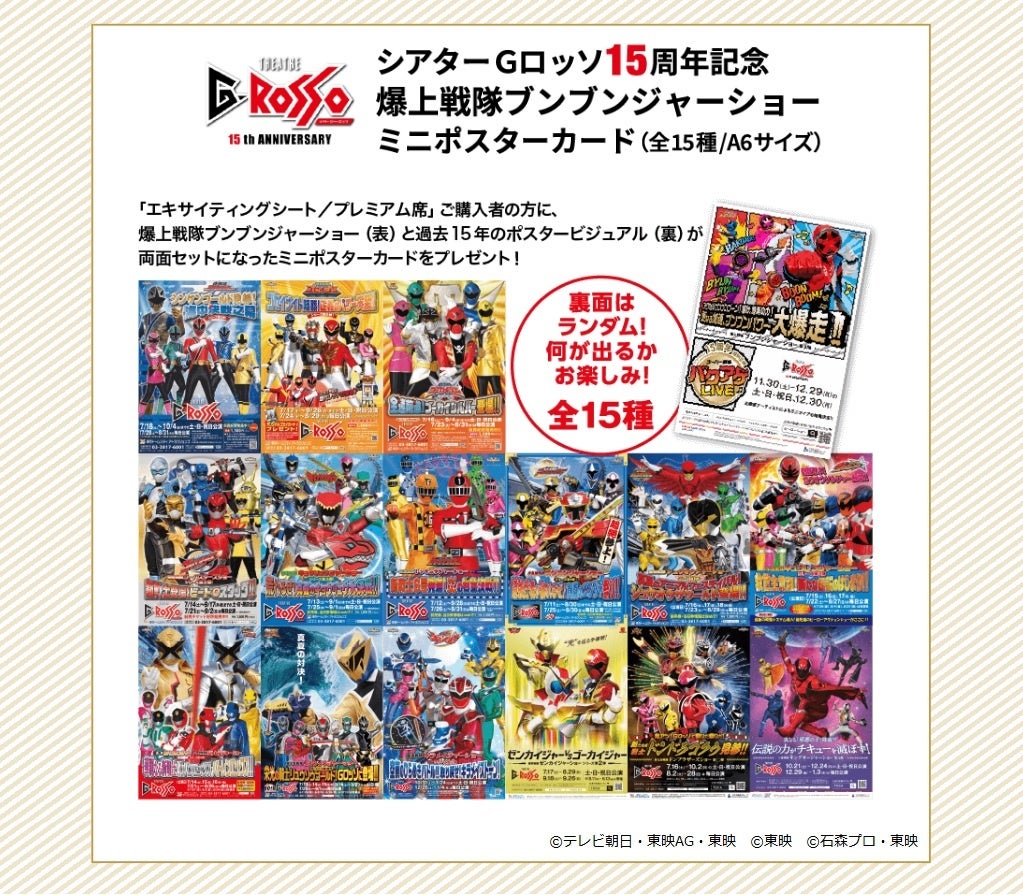 ・「エキサイティングシート/プレミアム席」ご購入の方に、爆上戦隊ブンブンジャーショー(表)と過去15年のポスタービジュアル(裏)が両面セットになったミニポスターカードをプレゼント!