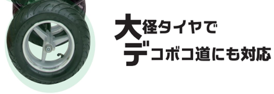 外径290mmの大型チューブタイヤを装備しており、安定走行を実現しております。