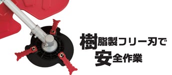 本製品ではバランスの良い樹脂製フリー刃を採用することで、安全性と切れ味を両立させています。樹脂製フリー刃は、障害物に当った際の衝撃を逃すことでの安全性と、ナイフ形状の刃の採用で、雑草を切断することに長け、切れ味にも期待ができます。