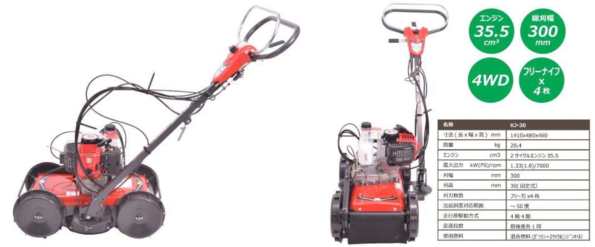 斜面も広い平地も安全に除草。レバー操作で歩くだけで草刈りができる。