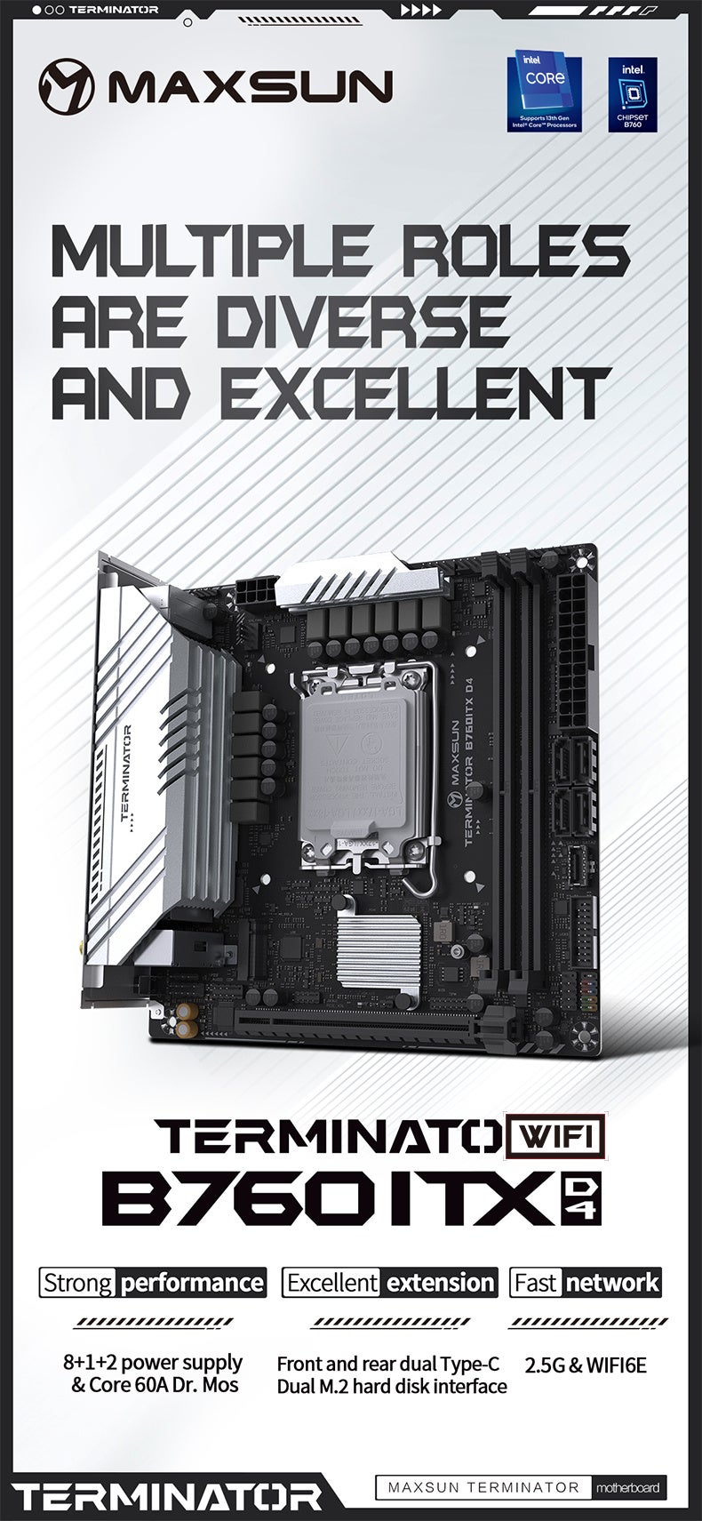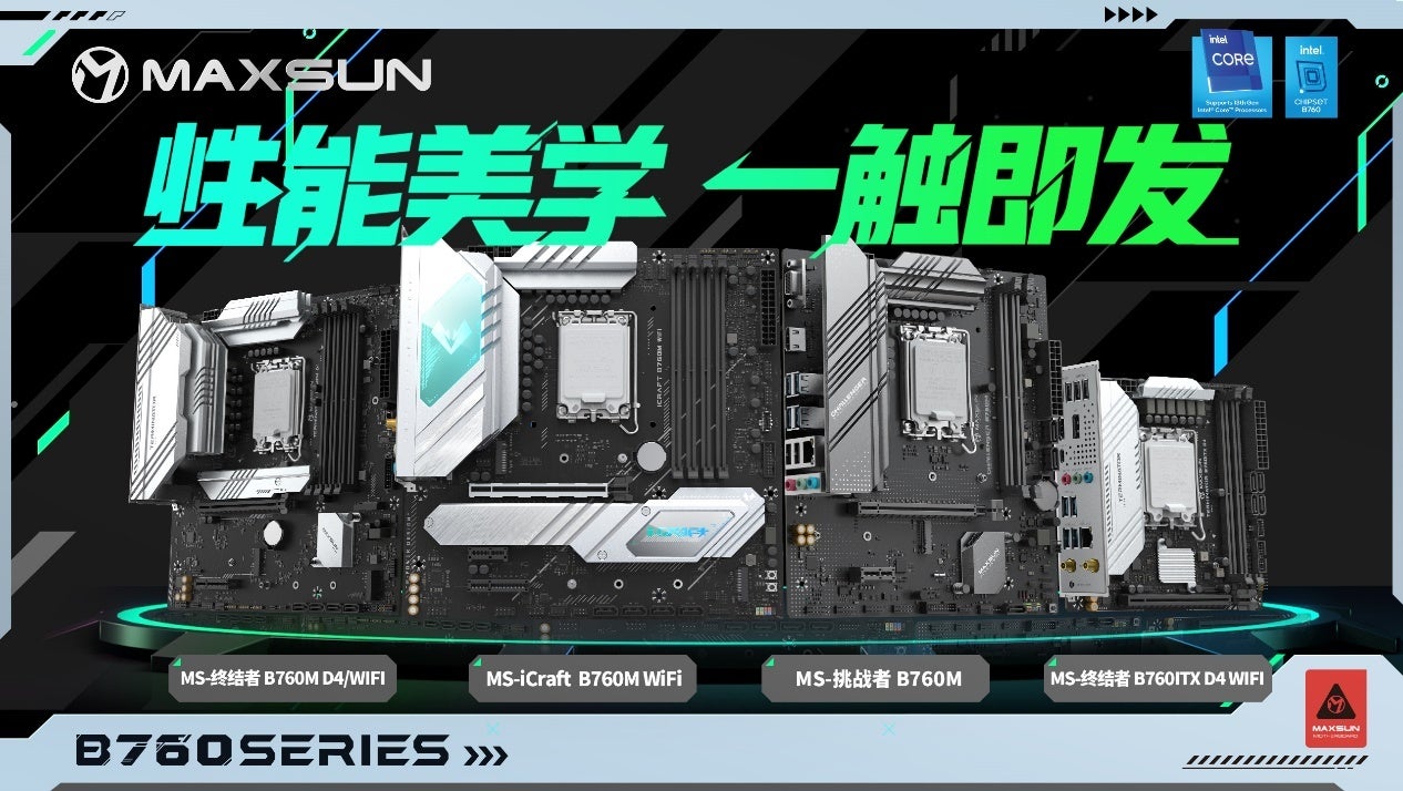 MAXSUNは、近年のDIY世代の新世代のプレーヤーの間で、評判が高くなっています。今回B760シリーズのマザーボードでは、5つの製品が6つのモデル、つまりICRAFT B760M WiFi、Terminator B760M D4 WiFi、Terminator B760M D4、Terminator B760ITX D4 WIFI、Challenger B760MとMilestone B760M D5です。