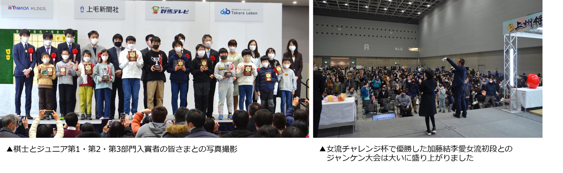 3年ぶりとなる「上州将棋祭り」は、以前より規模を拡大してGメッセ群馬にて開催。全国から約2,200人が来場し、棋士が多数出演する対局や女流チャレンジ杯、棋士との指導対局等の交流イベントで盛り上がりました。
