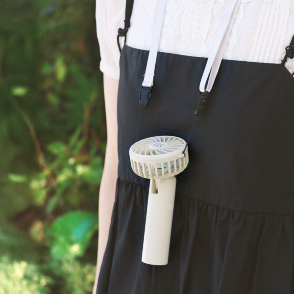 付属のストラップを取り付ければ、首掛け扇風機として使用可能。長さ調節ができ、アウトドアシーンや、荷物で両手が塞がるシーンでも大活躍します。