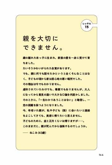 本書では、「自己肯定感が低いです」「口下手です」「ネガティブ思考です」といったお悩みに、ひきた氏が様々な角度から回答していきます。