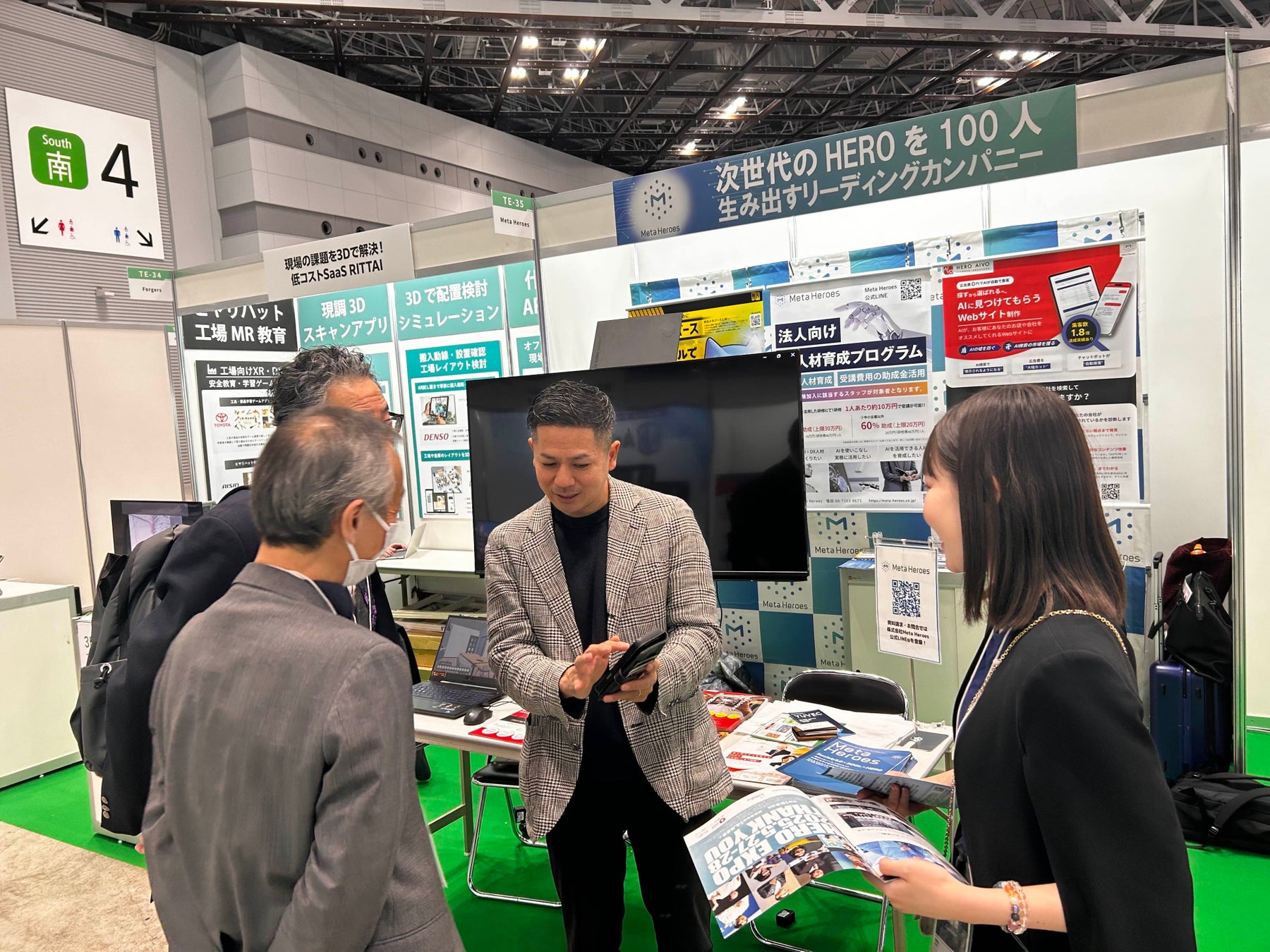 本展示会では、当社が取り組む「防災メタバース」のシミュレーション体験展示を行ったほか、会期中の交流会やステージイベントにおいて、当社代表の松石およびDX教育施設『Hero Egg』店長の横田が登壇し、当社の取り組みやDX人財育成についてプレゼンテーションを行いました。