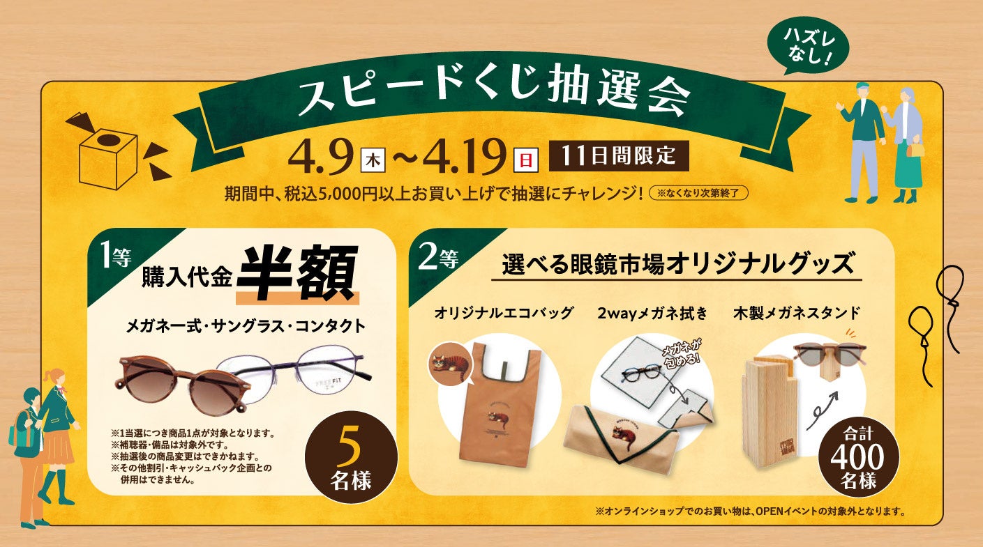 ※ オリジナルエコバッグ、2wayメガネ拭き、木製メガネスタンドの中からお選びいただけます