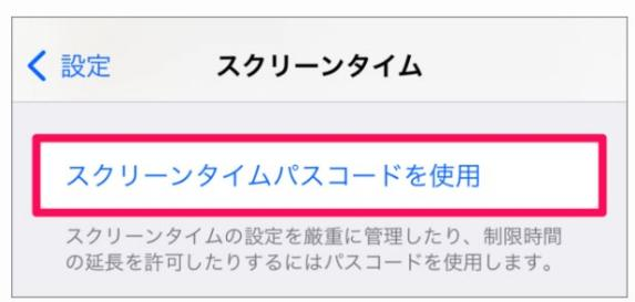 Step2:「スクリーンタイムパスコードを使用」をタップして、スクリーンタイム専用のパスコードを設定します。