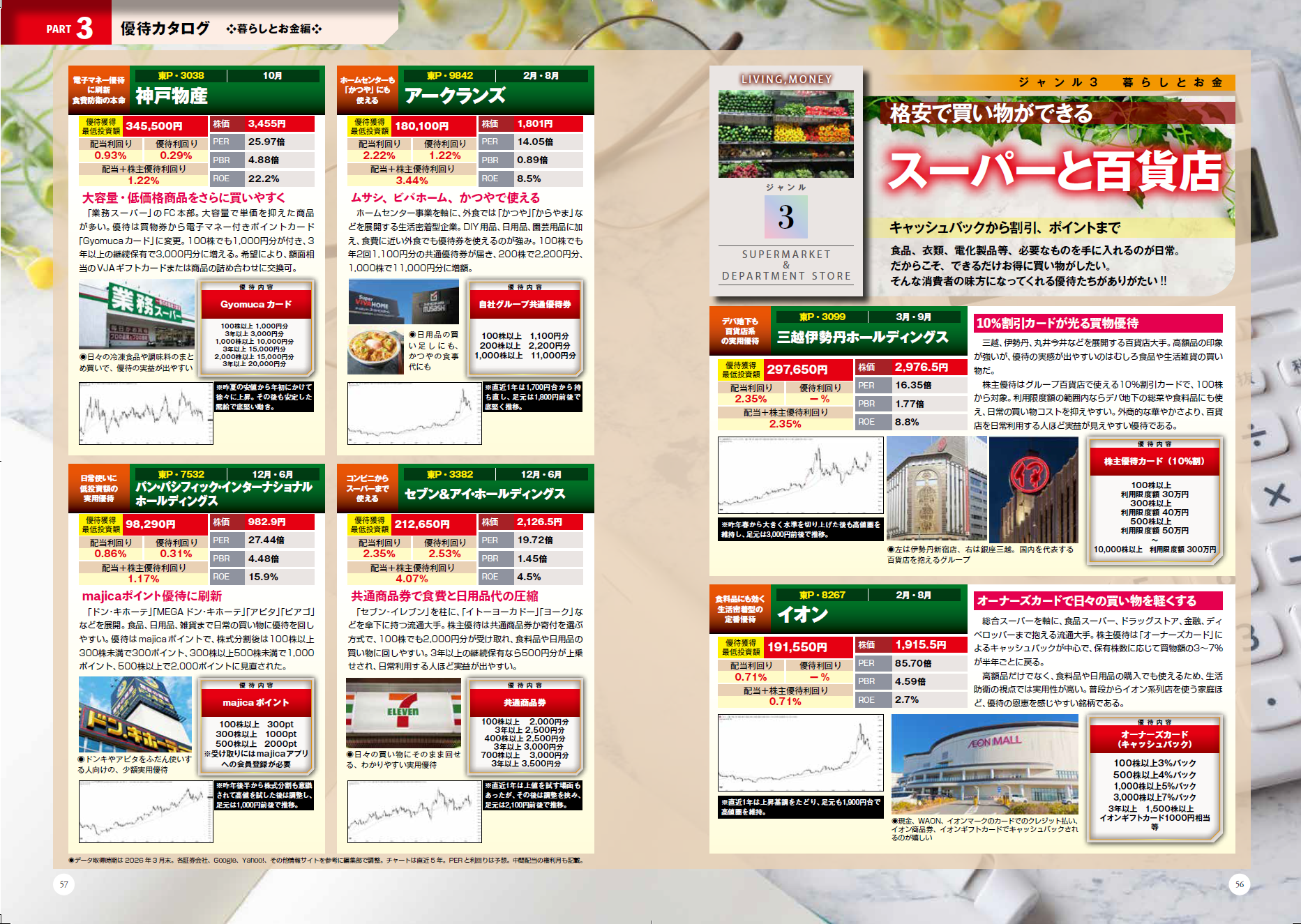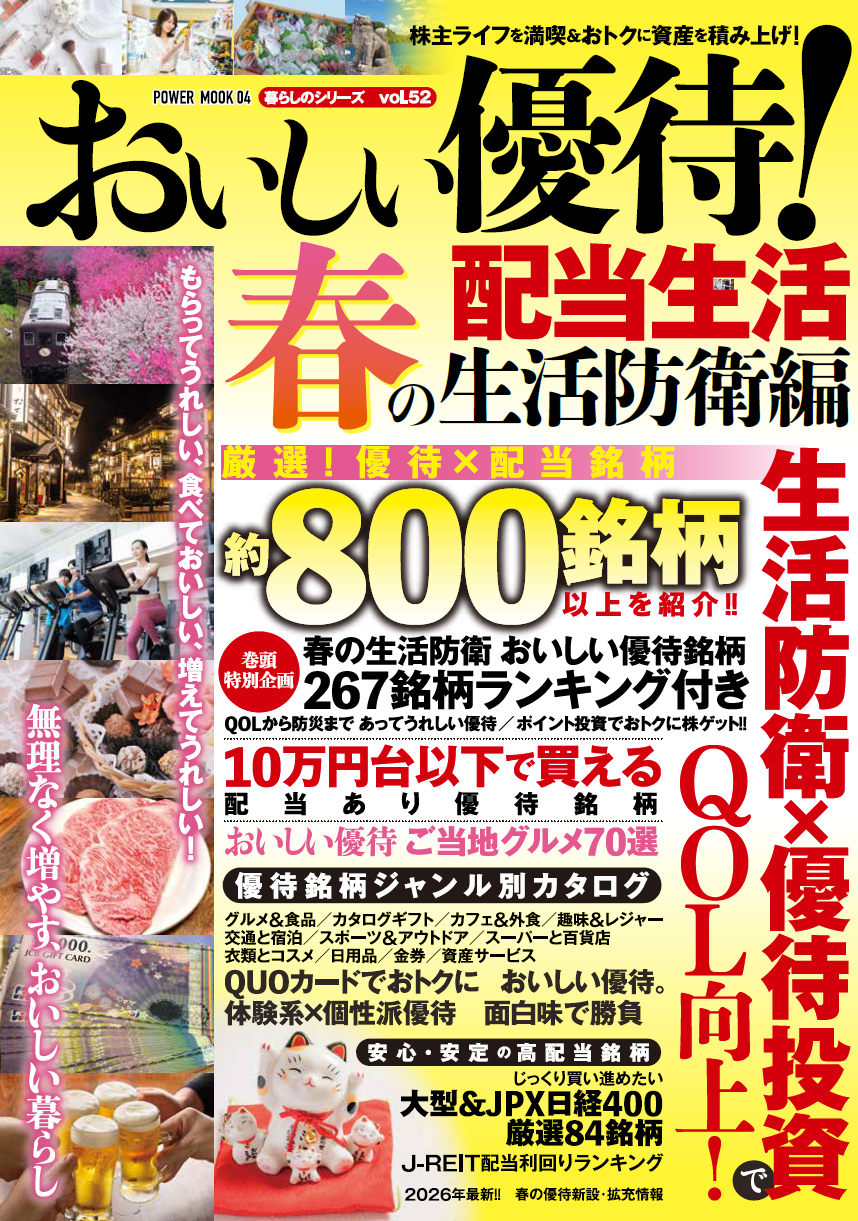 物価がじわじわと上がる現在、おトクに楽しみながら資産を増やす優待株投資が注目されています。そんな中、特に「生活防衛銘柄」的な優待株を中心に、約800銘柄に言及した株式投資ムック誌を制作いたしました。