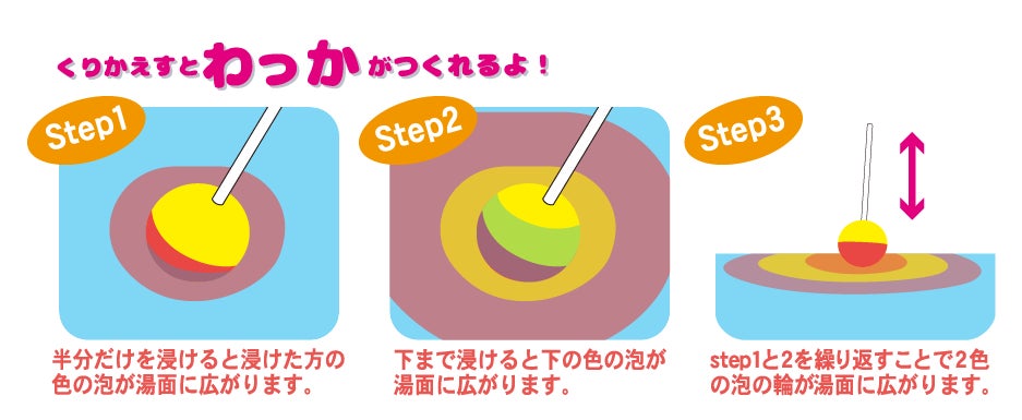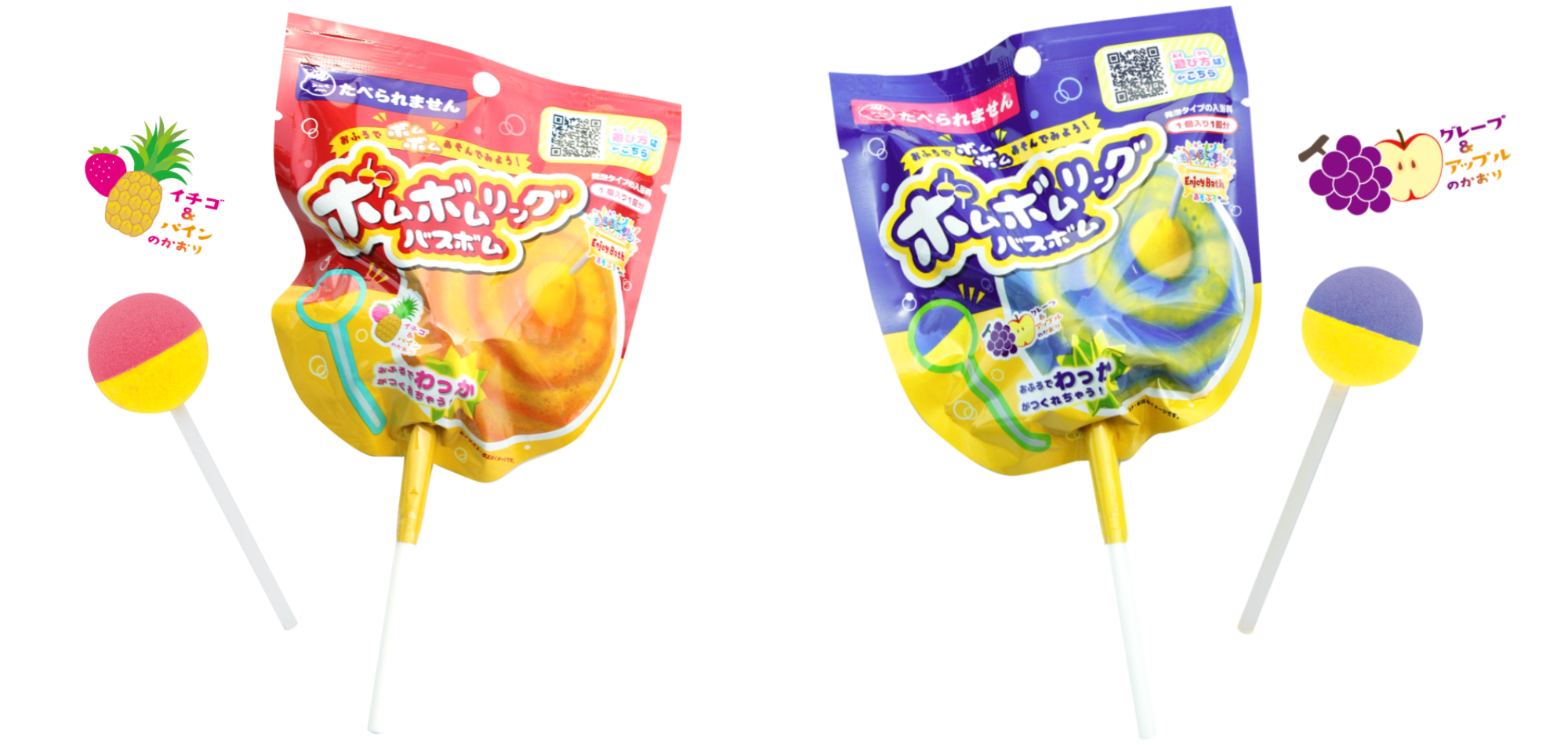 \おふろで遊ぼう!/おもしろ楽しいユニークな入浴料ブランド『あそぶろ』から、上下に動かすと2色のリングができる?!「ボムボムリングバスボム」が新登場!