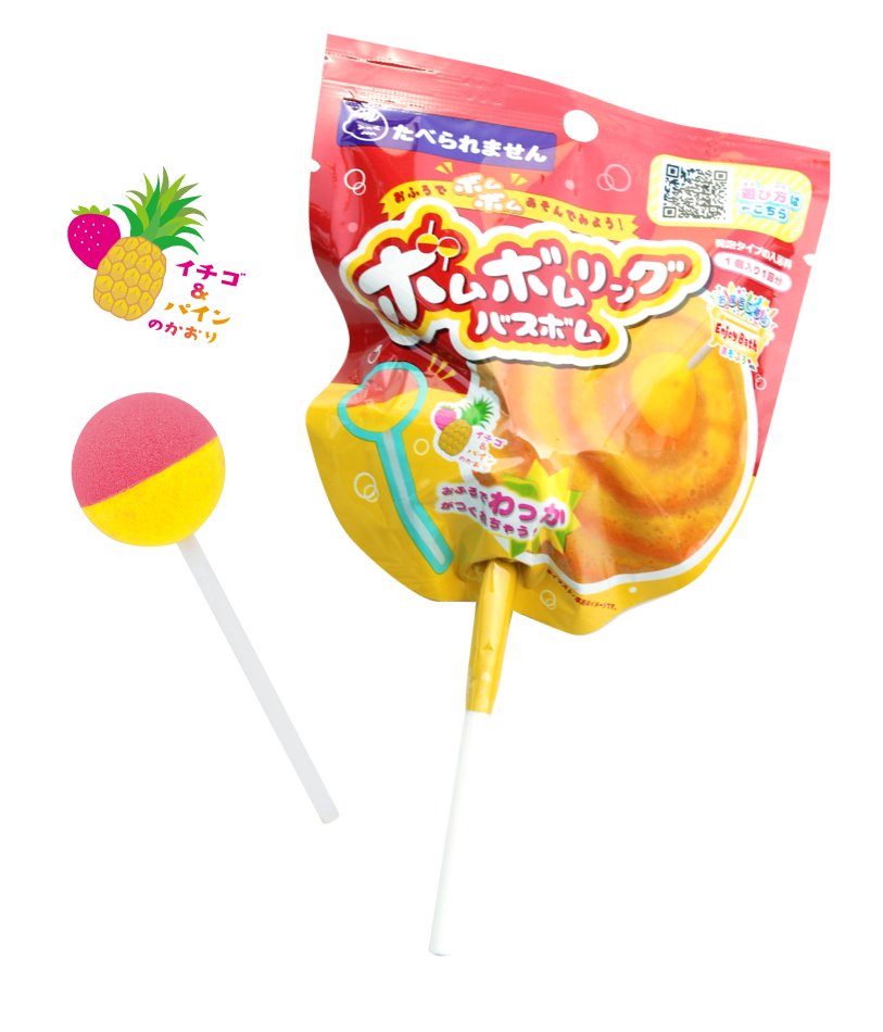 棒付きのバスボムはまるでロリポップのような可愛い見た目。