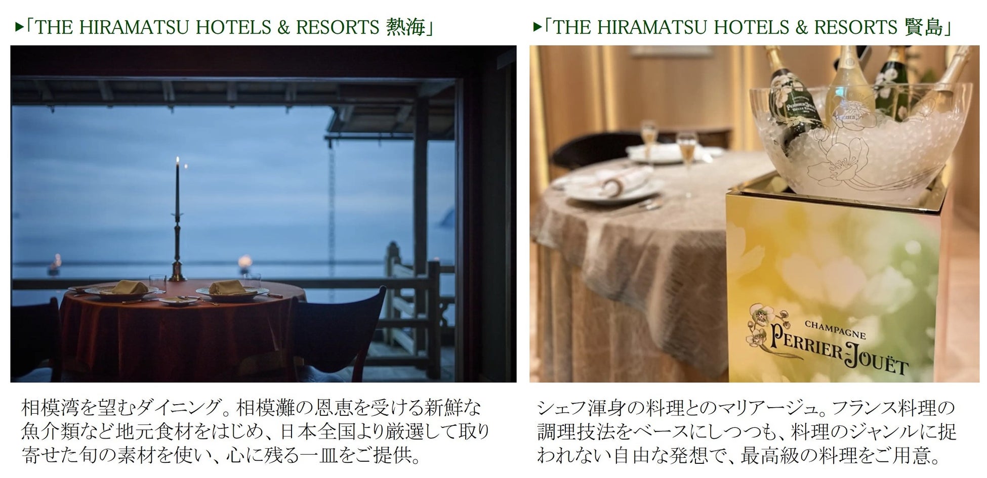 とのコラボレーションを、2025年1月5日(日)まで期間限定で実施いたします。期間中は新ヴィンテージ「ペリエ ジュエ ベル エポック 2015」や「ペリエ ジュエ ブラン・ド・ブラン」を「HIRAMATSU HOTELS」が誇る美食とともに、グラスやボトルでお愉しみいただけます。