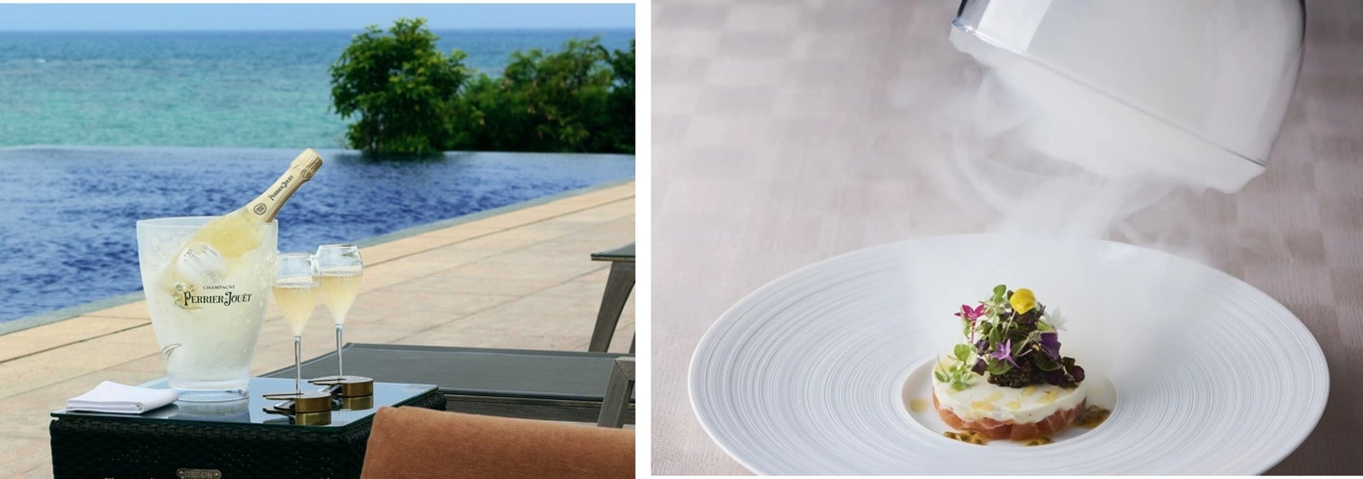 今年のコラボレーションにおける注目のリゾートは「THE HIRAMATSU HOTELS & RESORTS 宜野座」で、プールサイドにて「ペリエ ジュエ ベル エポック 2015」と「ペリエ ジュエ ブラン・ド・ブラン」をグラスでご提供します。海風の心地よいこのコラボレーションのために耐久性の高い素材で作られたペリエ ジュエのロゴ入り公式グラスと、アネモネをあしらった鉄製ワインシッター(コースター)と共に、宜野座村ならではの自然の美しさと特別なシャンパーニュのマリアージュを味わうことができます。