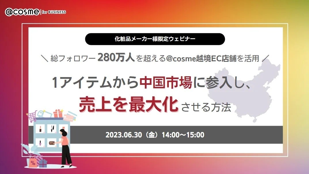 ウェビナー『【化粧品メーカー様限定ウェビナ―】~総フォロワー280万人を超える@cosme越境EC店舗を活用~1アイテムから中国市場に参入し、売上を最大化させる方法』6月30日開催