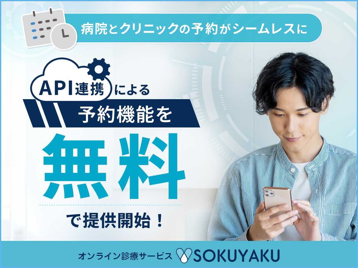 ジェイフロンティア株式会社(本社:東京都渋谷区、代表取締役社長執行役員:中村篤弘、以下「当社」)は、当社が提供するオンライン診療・服薬指導・処方薬配送サービス「SOKUYAKU(ソクヤク)」において、病院やクリニック公式ホームページとAPI連携する予約機能の無料提供開始をお知らせいたします。