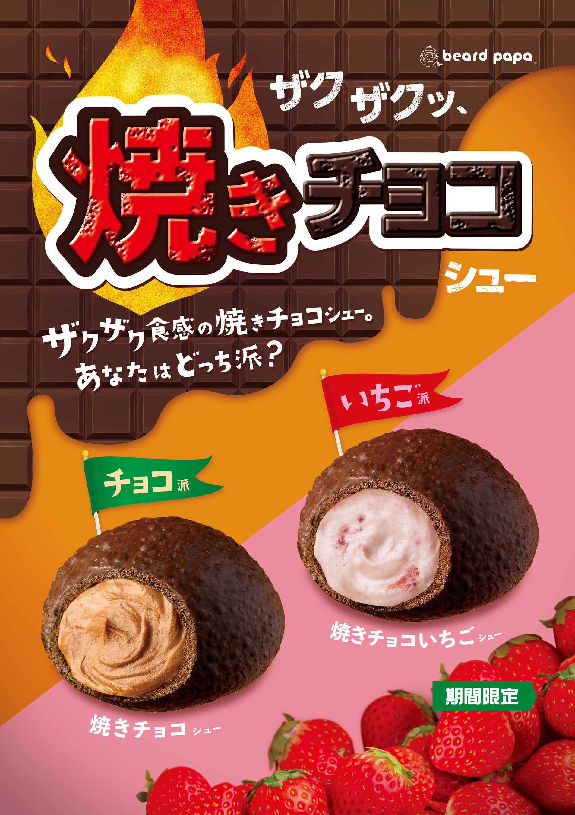 ビアードパパにて、チョコがザクッと香ばしい“焼きチョコシュー”復活!選べるクリームは濃厚チョコと甘酸っぱいいちごの2種類 「あなたはどっち派?」