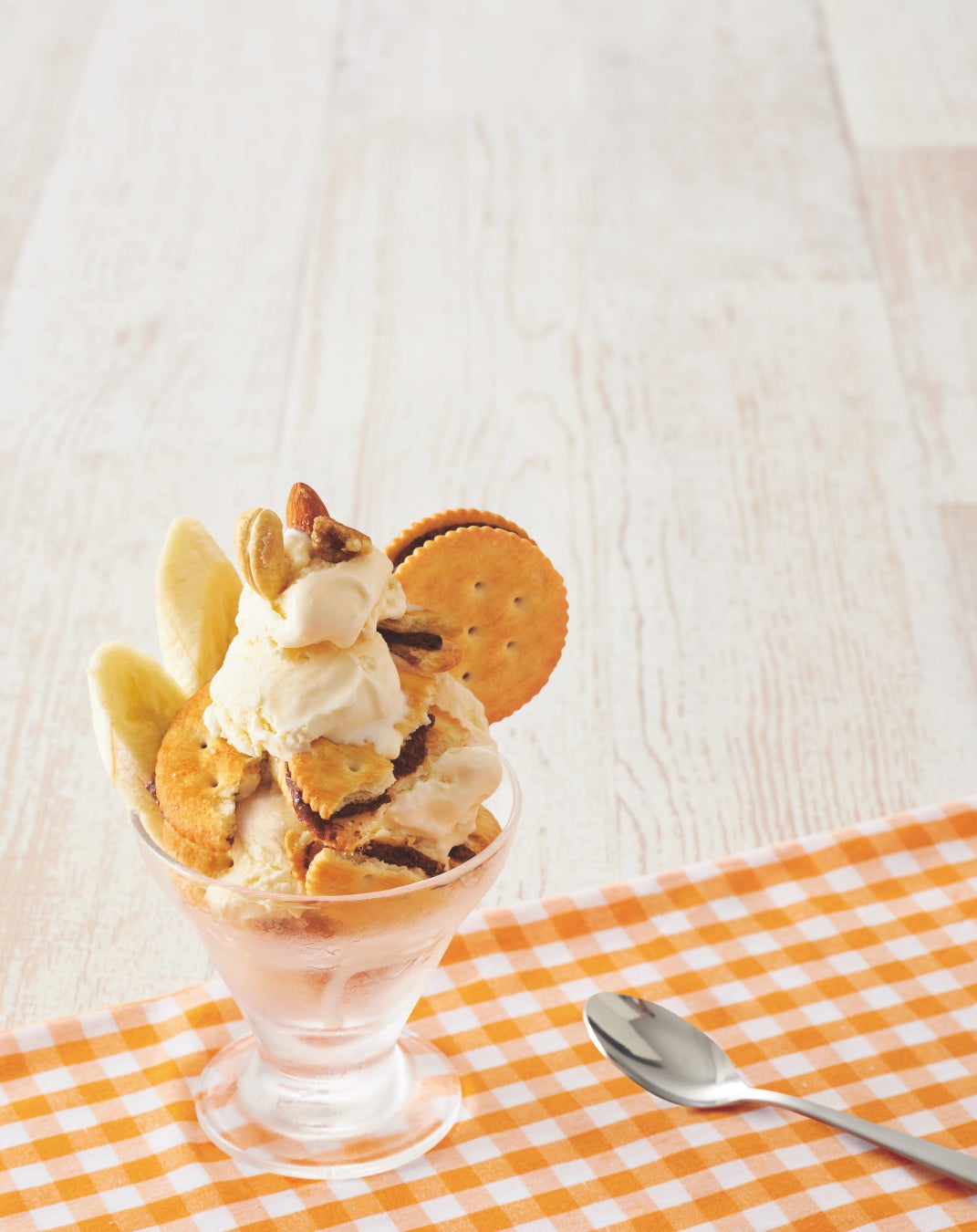 リッツの塩味にチョコレートの甘じょっぱさが最高な「リッツ チョコサンド」とバニラアイスを重ねるだけで簡単アイスパフェに!