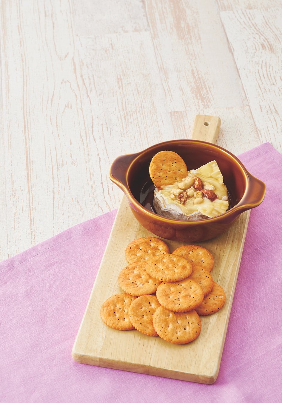 ご褒美級のフォンデュにスパイシーな「リッツ ブラックペッパー クラッカー」を!甘み、塩味にスパイスの融合が最高の美味しさです。赤ワインとのマリアージュがこれまた最高ですよ!