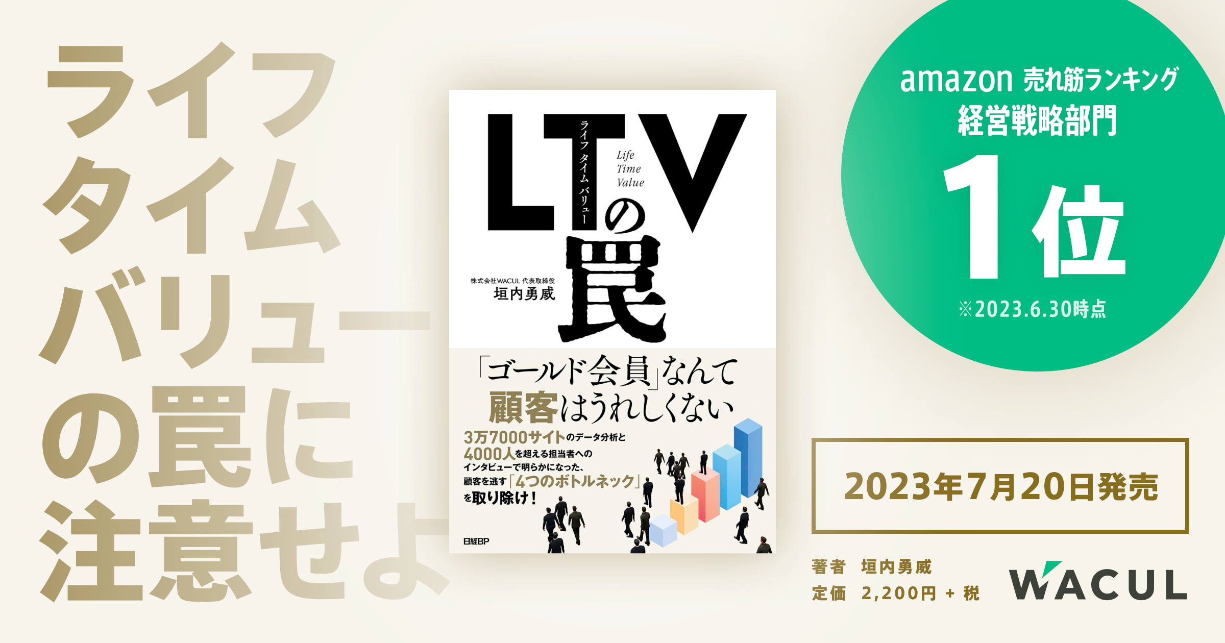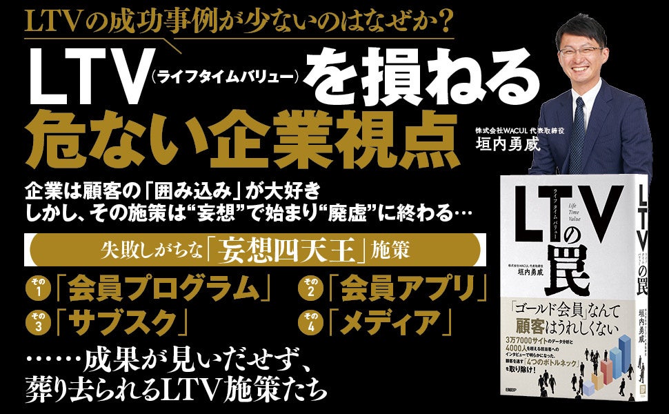 当社代表取締役でありマーケティングDXの専門家である垣内勇威が、これまでのLTV最大化に関するコンサルティング経験をまとめた書籍『LTV(ライフタイムバリュー)の罠』が2023年7月20日に発売されます。