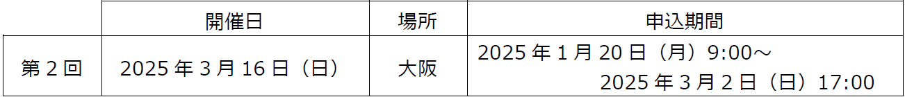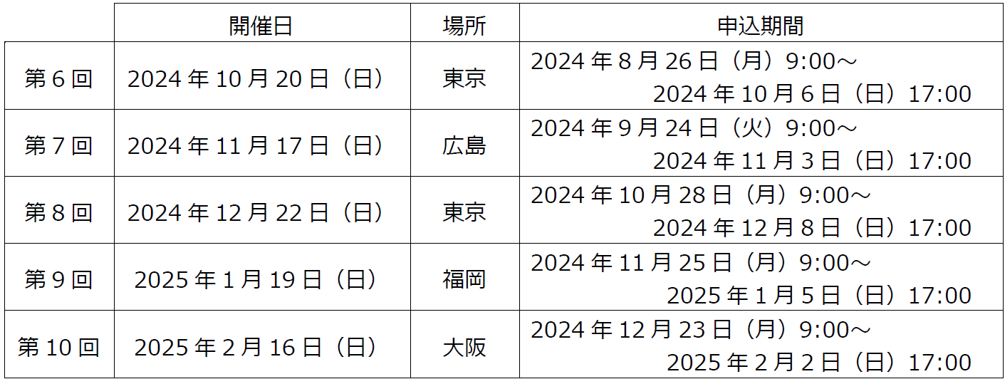 ・都合により会場・開催日を変更する場合がございます。お申し込みの際は、会場・開催日を必ずご確認ください。